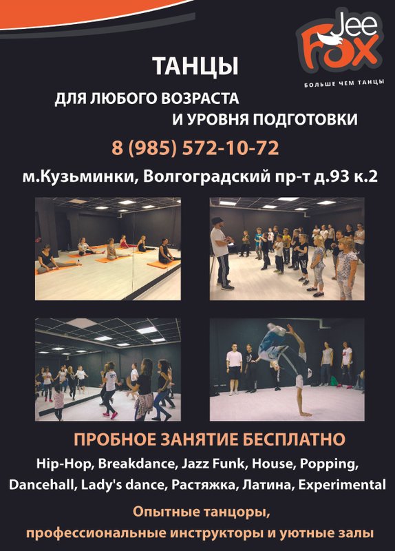 Школа танцев Jeefox оказывает услуги жителям Москвы. Как в каждой фирме, всерьез занимающейся образовательной деятельностью, у нас работают профессиональные преподаватели, готовые делиться с вами информацией и проявлять педагогическое мастерство.